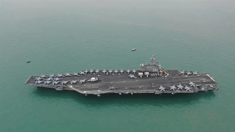Tàu sân bay USS Ronald Reagan của Mỹ. Ảnh: Liang Yingfei/Caixin Media/REUTERS