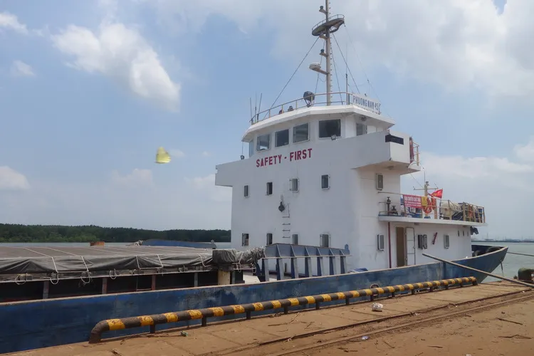 Tàu Phương Nam 45 trước khi rời cảng Phú Mỹ chở bụi thép hành trình ra Hải Phòng-ảnh: CTV