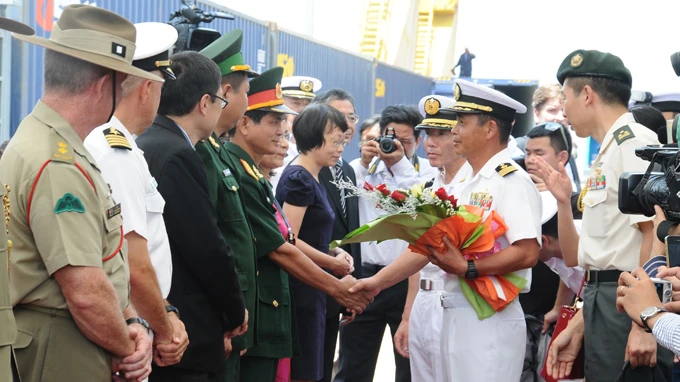 Đại diện VP UBND, Bộ Tư lệnh Quân khu 5, Bộ Chỉ huy Quân sự TP, Bộ Chỉ huy Bộ đội Biên phòng TP Đà Nẵng… đã ra cầu cảng Tiên Sa tiếp đoàn hải quân đa quốc gia này.