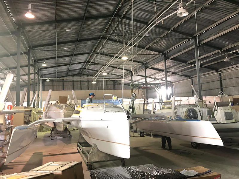 Thuyền buồm ba thân hạng sang, công nghệ tiên tiến hàng đầu đang được sản xuất tại Việt Nam. Ảnh: PHONG ĐIỀN