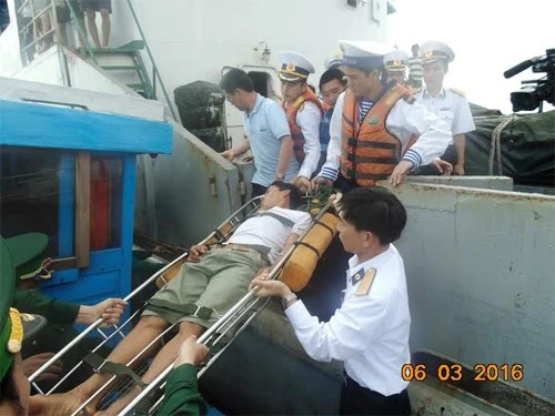Ông Mai Hữu Hậu, Giám đốc Trung tâm Y tế quân dân y kết hợp Lý Sơn, cho biết khi tiếp nhận, tình trạng sức khỏe của ngư dân này yếu, có triệu chứng chảy máu trong nên trung tâm lập tức tiến hành chẩn đoán và khẩn trương điều trị không để xảy ra các biến chứng khác. “Hiện ngư dân Chung đang được nằm ở khu điều dưỡng hồi sức và sức khỏe đang hồi phục” - ông Hậu nói.