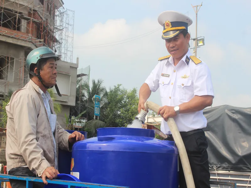 Tháp tùng cùng tàu 935 trên chuyến tàu chở nước ngọt đến người dân Bến Tre, Đại úy Nguyễn Văn Thương, Thuyền trưởng tàu 935 Lữ đoàn 125, Vùng 2 Hải quân, cho biết từ trước tết Nguyên đán đến nay, tàu của Lữ đoàn 125 đã chở bốn chuyến nước ngọt (1.000 khối nước) phục vụ miễn phí cho người dân các huyện Ba Tri, Bình Đại và Thạnh Phú, Châu Thành trước tình hình hạn hán, xâm nhập mặn đang diễn ra gay gắt.