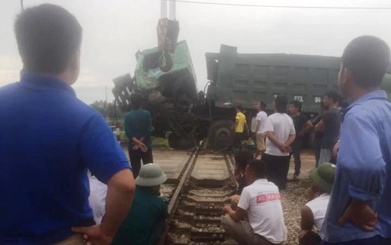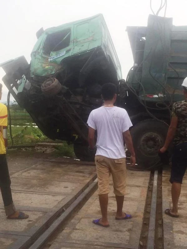 Tàu hỏa chở khách mang số hiệu NA1 chạy tuyến Hà Nội- Nghệ An lao tới, đã hãm phanh nhưng vẫn đâm trúng đầu xe tải. Cú đâm mạnh khiến đầu xe tải bị hư hỏng nặng, xe nghiêng chắn ngang đường sắt Bắc-Nam.
