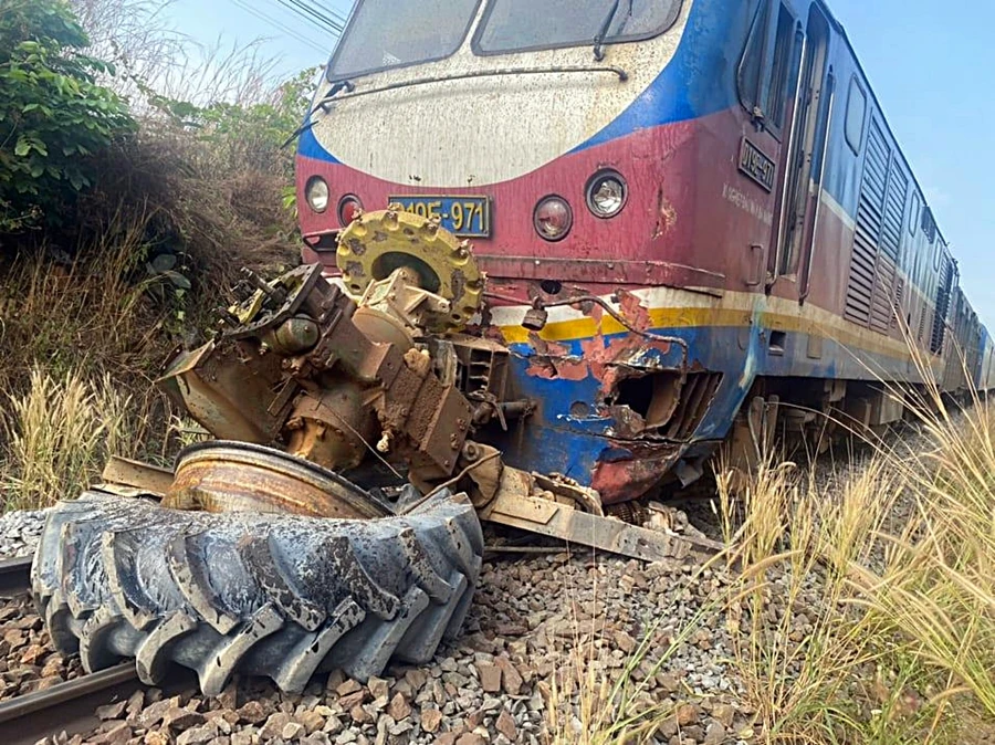 Theo đó, đoàn tàu SE8 có đầu máy số D19E - 971 đang chạy theo hướng Bắc - Nam thì tông vào 1 xe máy cày băng qua đường sắt.