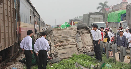 Hiện trường vụ tai nạn giữa tàu hỏa và xe taxi