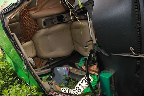 Xe taxi Mai Linh Nghẹ An mang BKS 37A-081.35 nát hỏng sau vụ tai nạn.