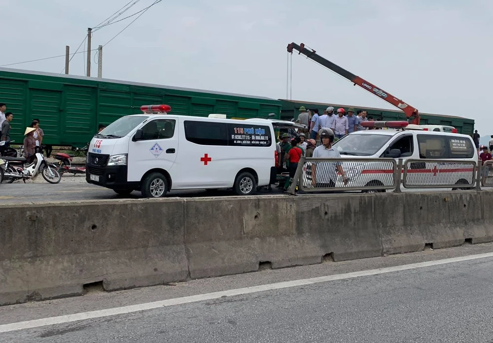 Vào thời điểm trên, xe tải 37C-243.31 cố vượt qua đường sắt Bắc-Nam trong lúc một tàu hàng chạy hướng TP.HCM - Hà Nội đang đi tới và va chạm xảy ra.