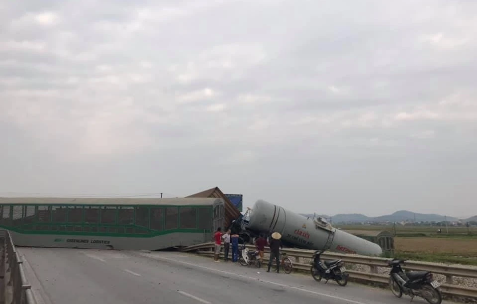 Vụ tai nạn đang làm ách tắc quốc lộ 1A lẫn đường sắt Bắc-Nam.
