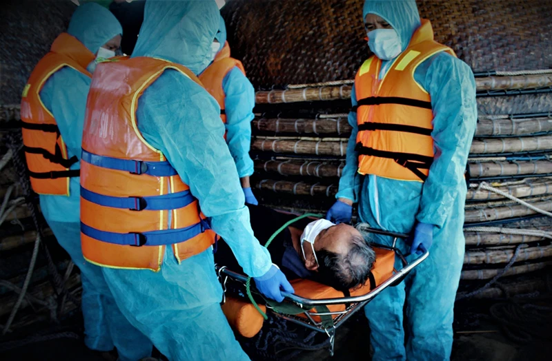 Đến gần 24 giờ ngày 23-9, tàu KN417 phối hợp cán bộ, chiến sĩ đảo Núi Le A đưa ngư dân bị nạn cùng người chăm sóc lên đảo an toàn để cấp cứu, điều trị. Trong quá trình tiếp cận, đưa ngư dân vào đảo cấp cứu, cán bộ, nhân viên tàu KN417 đã tuân thủ nghiêm quy định về phòng, chống dịch COVID-19.