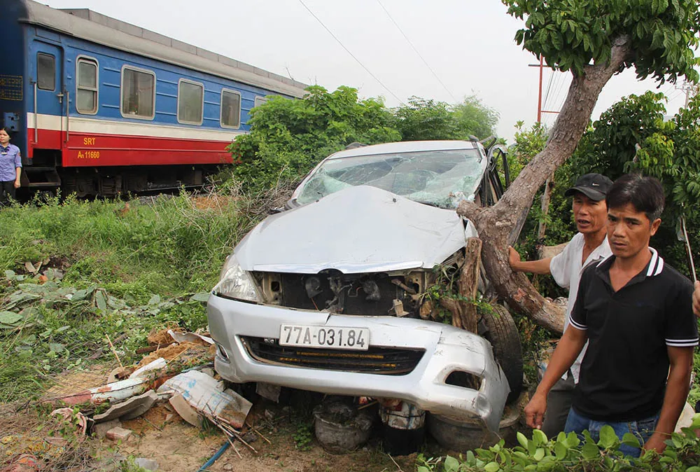 Theo thông tin ban đầu, ô tô bảy chỗ 77A-031.84 (chưa rõ danh tính tài xế) chạy băng qua đường ngang dân sinh giao nhau với đường sắt tại vị trí trên. Lúc này, đoàn tàu lửa chở khách SQN2 lưu thông hướng Nam-Bắc chạy tới, húc văng ô tô một đoạn hơn 5 m. Chiếc xe bị mắc kẹt vào gốc cây ven đường.