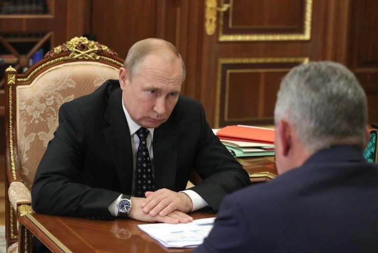 Tổng thống Nga Vladimir Putin (bên trái) trong cuộc trao đổi với Bộ trưởng Quốc phòng Sergei Shoigu. Ảnh: CNBC