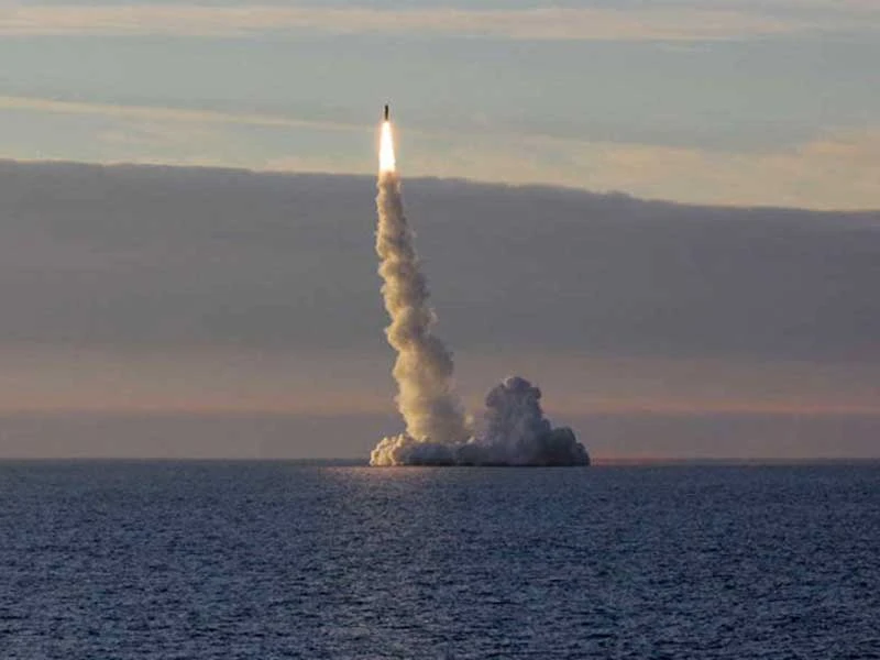 Một vụ phóng thử tên lửa đạn đạo xuyên lục địa (ICBM) từ tàu ngầm được Nga tiến hành vào ngày 26-6. Ảnh: BỘ QUỐC PHÒNG NGA