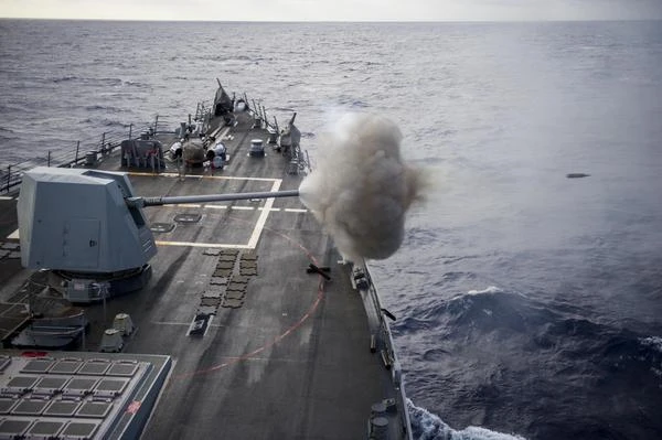 Súng 5 inch trên tàu USS Roosevelt của Mỹ - Ảnh: Twitter