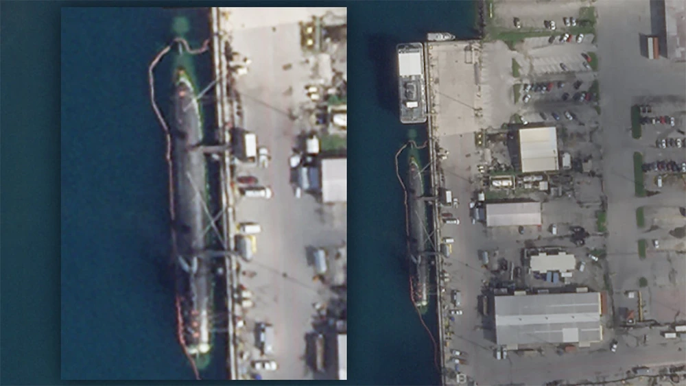 Ảnh vệ tinh chụp tàu ngầm USS Connecticut tại Guam. Ảnh: THE WAR ZONE
