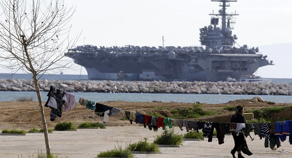 Theo hãng tin Sputnik, tàu sân bay USS George H. W. Bush của Mỹ được hộ tống bởi một tàu khu trục của Đan Mạch, một tàu chiến của Pháp cùng với một phi đội trực thăng tấn công bay ở phía trên.