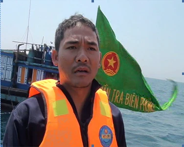 Ngư dân Trương Văn Phương bàng hoàng kể lại việc tàu Trung Quốc áp sát dàn lưới của tàu mình.