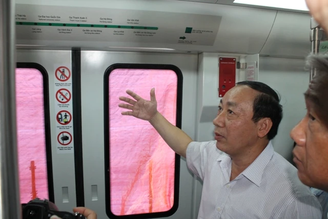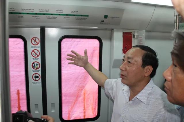 Thứ trưởng, Bộ GTVT Nguyễn Hồng Trường tham quan mẫu tàu điện.