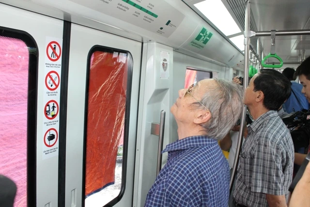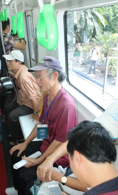 Người dân thử cảm giác ngồi tàu điện.