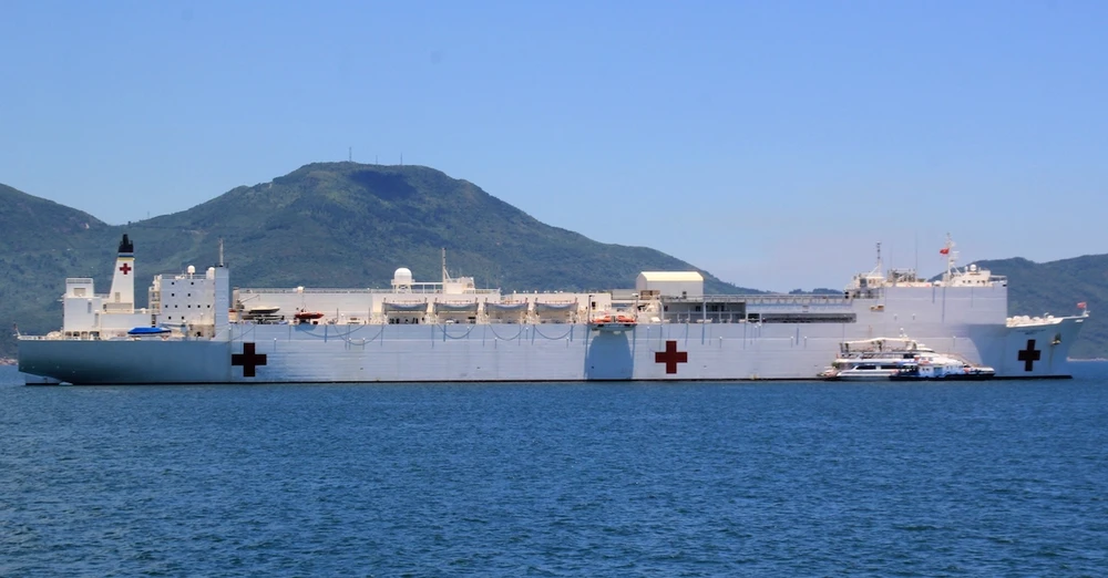 Đoàn Hải quân Hoa Kỳ với 1.600 sĩ quan, thủy thủ cùng các y, bác sĩ trên tàu bệnh viện khổng lồ USNS Mercy tham gia chương trình PP15 tại Đà Nẵng. Ảnh: LÊ PHI