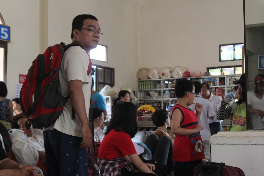 Anh Nguyễn Phước Quảng (quê ở Quảng Trị) sau khi đợi chờ mua vé tàu quá lâu mà không được đã quyết định chọn phương tiện khác nhưng cũng không mấy thoải mái. "Đi xe chật hẹp, nhồi nhét nhưng còn có hy vọng về đến nhà hơn là phải đợi mua vé ở ga"- anh Quảng cho biết.