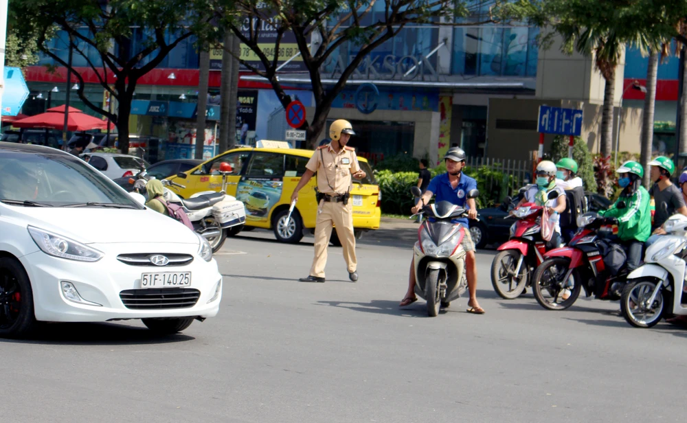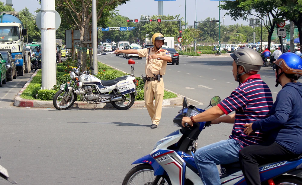 Đội CSGT Tân Sơn Nhất phân luồng tại trục chính vào sân bay Tân Sơn Nhất