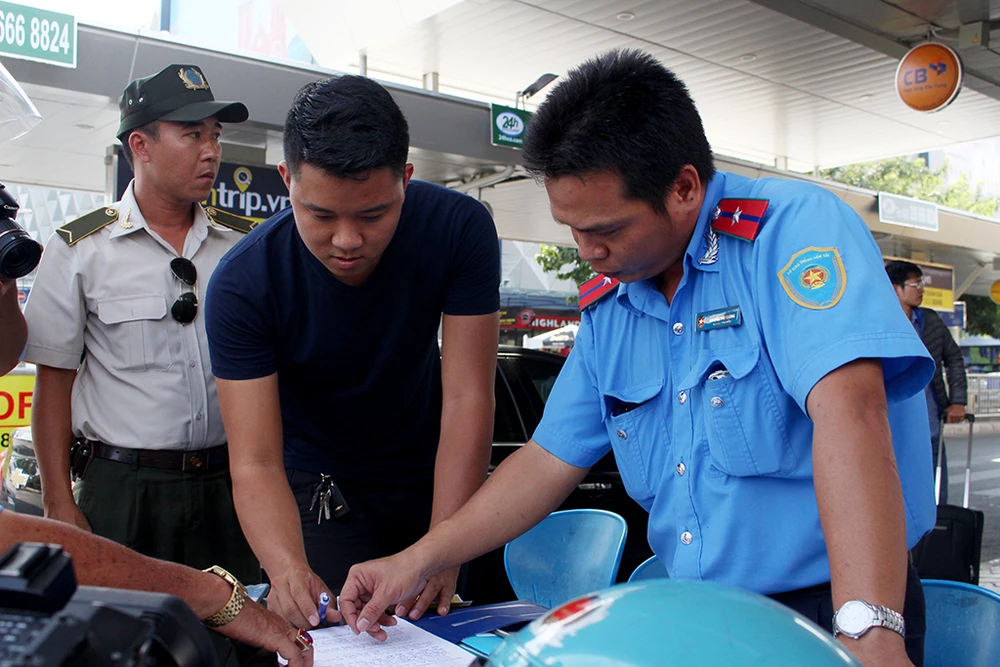 Có mặt tại sân bay Tân Sơn Nhất, trao đổi với PV, Đội 8 Thanh tra Sở GTVT cho biết vào lúc 9 giờ 40 ngày 13-1, lực lượng an ninh sân bay đã phát hiện thanh niên tên Bùi Đức Uy (ngụ Bến Tre) điều khiển xe ô tô mang biển số 51F-840.47 có hành vi lên sảnh nhà ga quốc tế (Cảng HKQT Tân Sơn Nhất) chèo kéo và vận chuyển một hành khách nam (người nước ngoài) đi từ sân bay về hướng đường Thủ Khoa Huân (quận 1, TP.HCM) với giá 120.000 đồng.