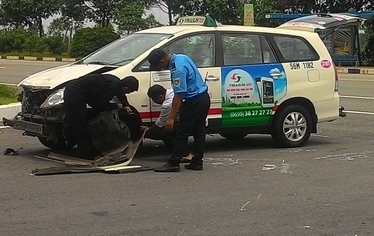 Trước thời điểm xảy ra tai nạn, chiếc taxi của hãng Vinasun do tài xế Thạch Su Thanh (27 tuổi, quê Sóc Trăng) cầm lái di chuyển trên đường Hùng Vương. Khi đến đoạn đường qua phường Hòa Phú, tài xế Thanh đánh tay lái qua trái để quay đầu xe đầu xe thì tông phải hai người đàn ông đi trên một xe máy di chuyển theo hướng ngược lại.