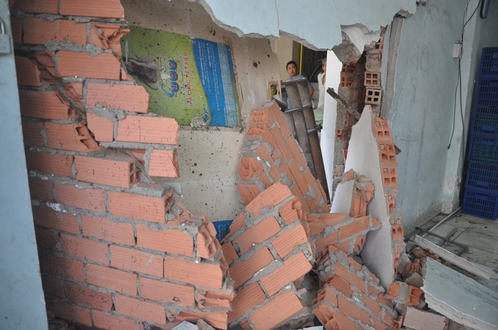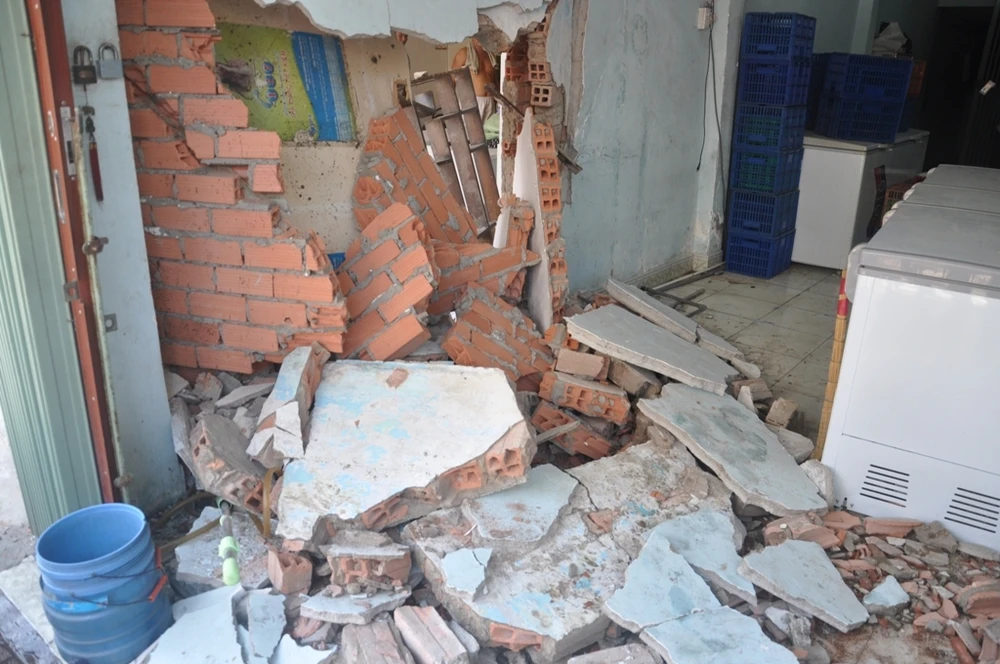 Chị Nguyễn Thị Riêm My, nhân viên cửa hàng cơ khí số 1204 Phạm Thế Hiển kể: “Tôi cùng một nữ nhân viên bên trong cửa hàng cơ khí nghe tiếng rầm rầm. Gạch từ tường văng tứ tung. Sợ bị nhà sập nên tôi hét lớn cho những người trong nhà thoát ra ngoài”.