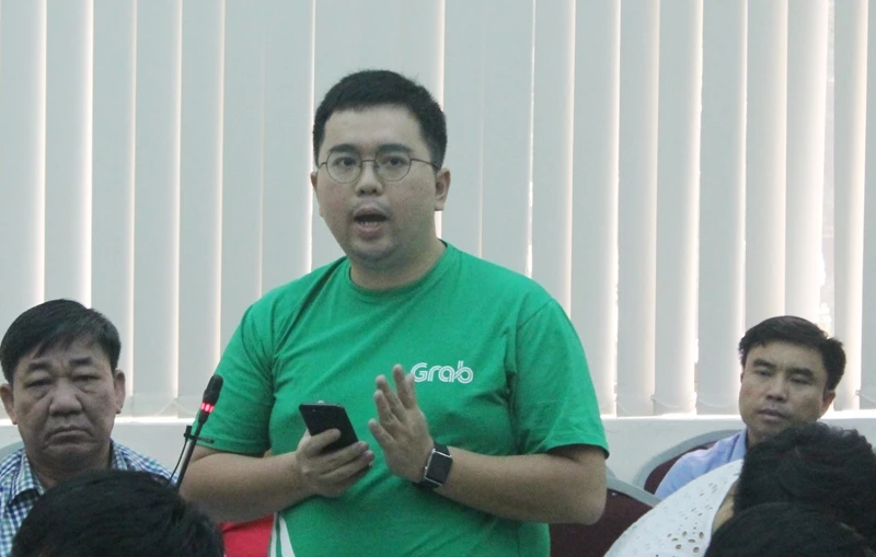 Đại diện Grab đáp lại những cáo buộc của taxi truyền thống. Ảnh: VIẾT LONG