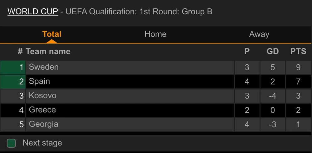 Sau bàn thua, dù thời gian của trận đấu còn nhiều, nhưng Tây Ban Nha vẫn không thể có được bàn thắng gỡ hòa, và đội bóng HLV Enrique đành chấp nhận trắng tay rời Thụy Điển. Với chiến thắng gây sốc khi đánh bại đối thủ mạnh hơn là Tây Ban Nha, tuyển Thụy Điển vươn lên chiếm vị trí đầu bảng B với 9 điểm sau 3 trận, Tây Ban Nha rơi xuống vị trí thứ hai với 7 điểm mặc dù đá nhiều hơn 1 trận. Ở trận đấu còn lại của bảng B, Kosovo đánh bại chủ nhà Georgia với tỷ số 1-0.