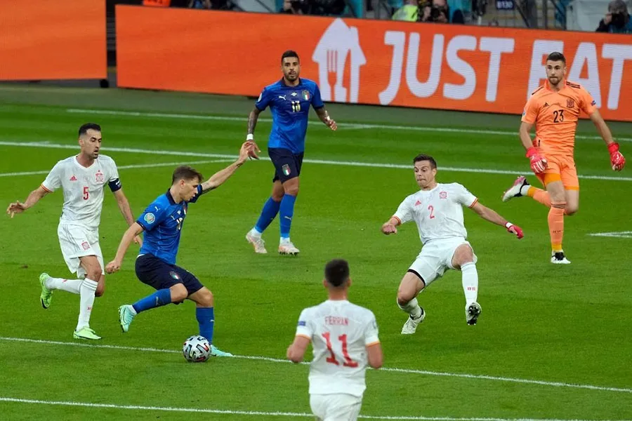 Lần đầu tiên người xem thấy một đội tuyển Ý hừng hực lối chơi pressing tầm cao, thế mà nhiều lúc phải co cụm phòng ngự. Trận bán kết rạng sáng 7-7 cũng tương tự trận chung kết Euro năm 2012, khi các tuyển thủ TBN buộc người Ý phải chạy theo bóng. Chỉ có điều là chín năm trước TBN dễ dàng có bốn bàn thắng thì bây giờ họ lại bỏ lỡ quá nhiều từ vô số cơ hội.
