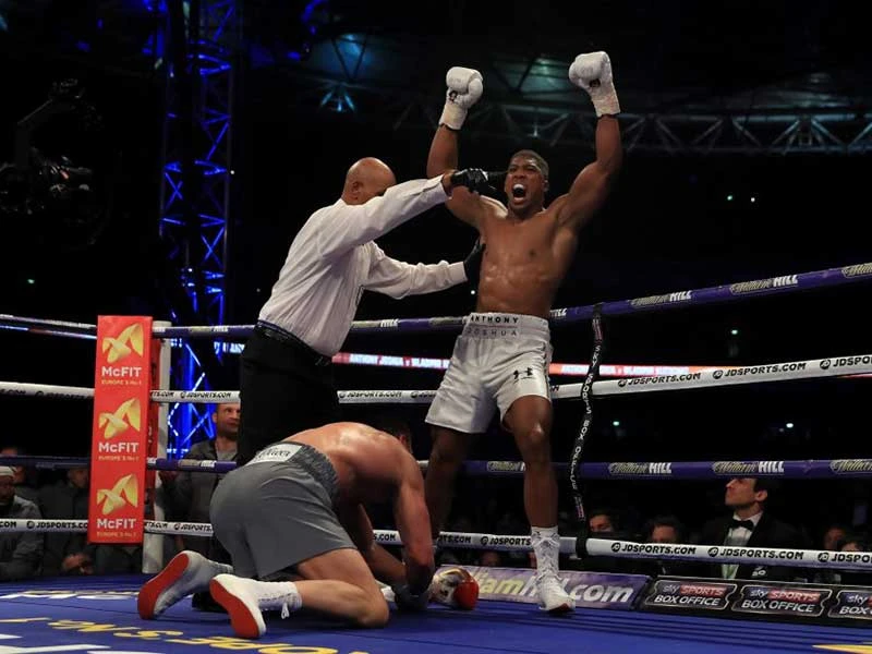 Trận đấu kinh điển này diễn ra trước sự chứng kiến của 90.000 khán giả tại sân Wembley cùng hàng trăm triệu khán giả theo dõi trực tiếp qua màn hình. Cuối cùng, bằng sức trẻ cũng như sự kiên nhẫn, Joshua đã thắng knock-out kỹ thuật Klitschko ở hiệp thứ 11. Đây cũng là trận đấu người ta chứng kiến lần đầu tiên trong sự nghiệp quyền Anh chuyên nghiệp, Joshua phải nằm sàn sau cú đấm cực mạnh ở hiệp thứ sáu của Klitschko.
