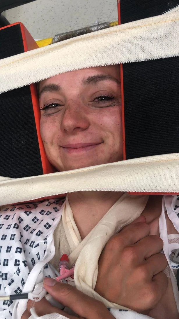 Nữ tay đua người Anh vui vẻ khoe ảnh trên Twitter, đồng thời bênh vực đồng nghiệp và cho rằng đó chỉ là tai nạn bình thường.