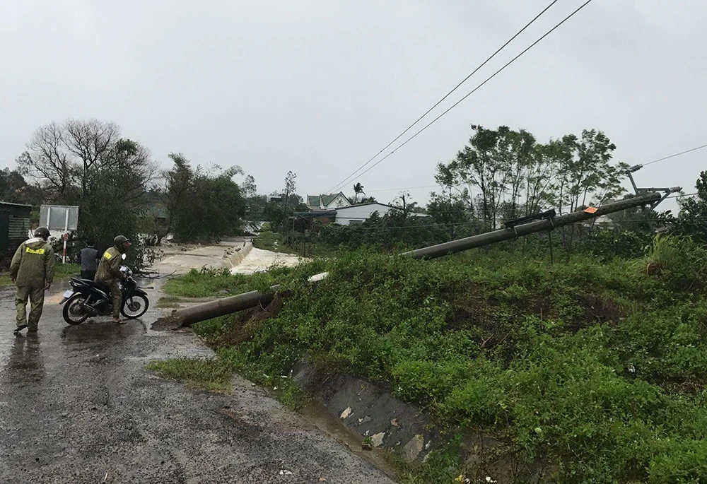 Trụ điện ở Đắk Lắk bị gãy đổ. Ảnh: T.ANH