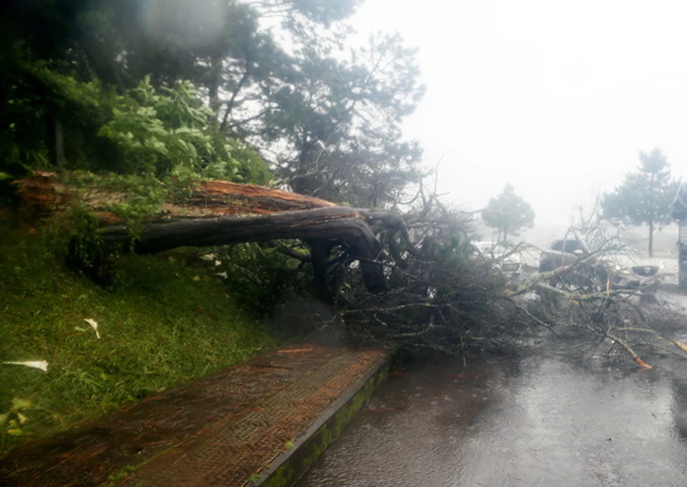 Cây xanh ở Đà Lạt bị bão đánh gãy.