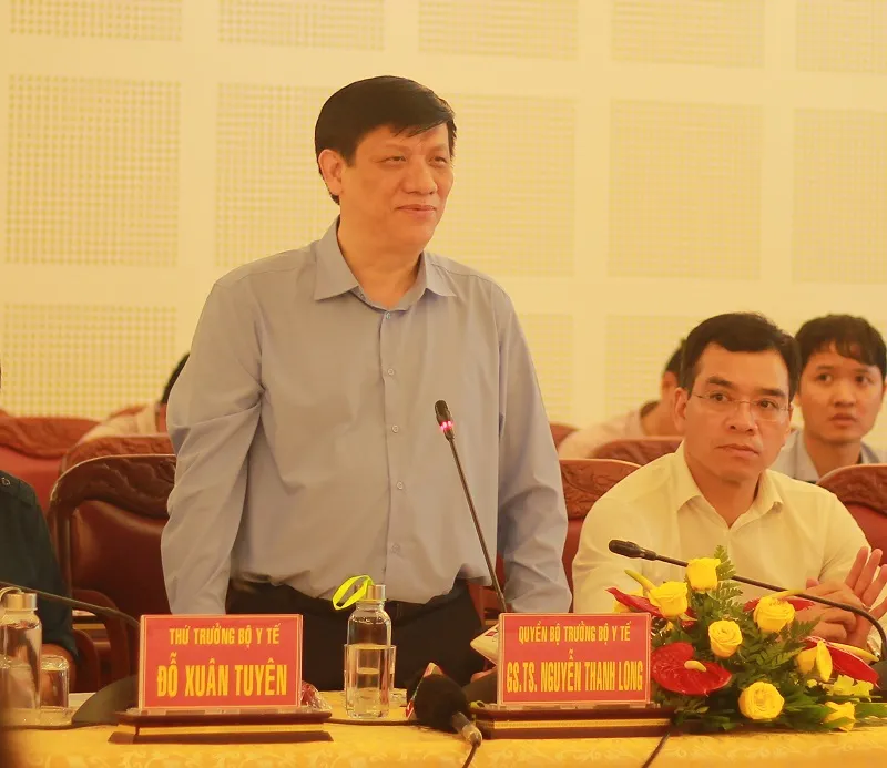 Quyền Bộ trưởng Bộ Y tế GS.TS Nguyễn Thanh Long phát biểu tại buổi làm việc. Ảnh TN