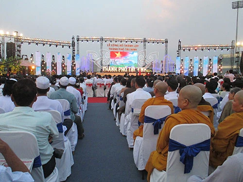 Phát biểu tại buổi lễ, Phó thủ tướng Hoàng Trung Hải chúc mừng sự kiện trọng đại của tỉnh Tây Ninh. Phó Thủ tướng đánh giá, sau ngày thống nhất đất nước, thị xã Tây Ninh đã vươn lên mạnh mẽ, xứng đáng là trung tâm chính trị, kinh tế, văn hóa xã hội của tỉnh. Đảng bộ, chính quyền và nhân dân tỉnh Tây Ninh cần nâng cao năng lực quản lý hành chính, đoàn kết dân tộc, phấn đấu đưa TP Tây Ninh thành đô thị loại II.