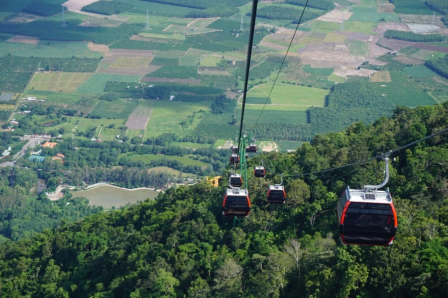 Du khách đi bằng cáp treo lên núi Bà Đen Tây Ninh. ẢNH: TÚ UYÊN
