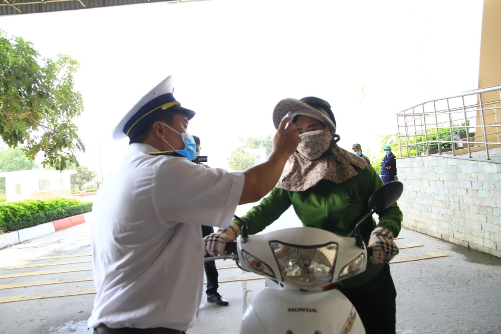 Đo thân nhiệt người nhập cảnh biên giới. Ảnh T.M