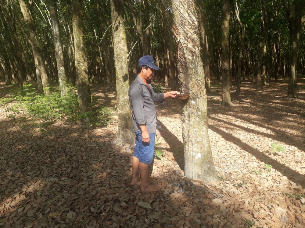 Một hộ dân đang khai thác vườn cây cao su trên đất được giao. Ảnh: KC