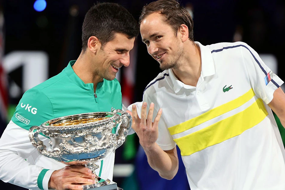Daniil Medvedev (phải) chia sẻ niềm vui vô địch giải Úc mở rộng