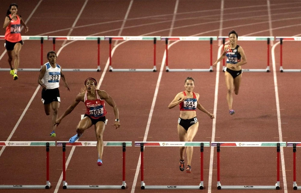 Dùng chất cấm Kemi Adekoya (103) bị tước chức vô địch, chiếc HCV Asiad 2018 được trao lại cho á quân đường chạy 400 m rào Quách Thị Lan (845). ẢNH: PHẠM HUY