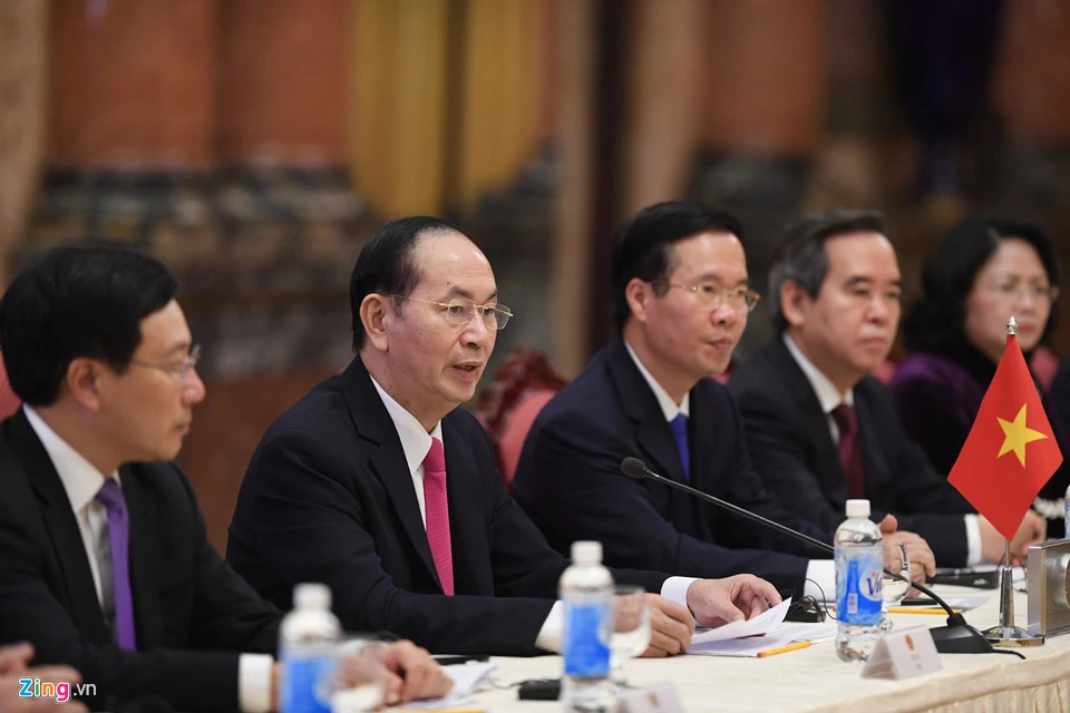 Sau khi đi dạo cùng Tổng Bí thư Nguyễn Phú Trọng, Chủ tịch Trung Quốc Tập Cận Bình đã hội kiến với Chủ tịch nước Trần Đại Quang. Ảnh: ZING