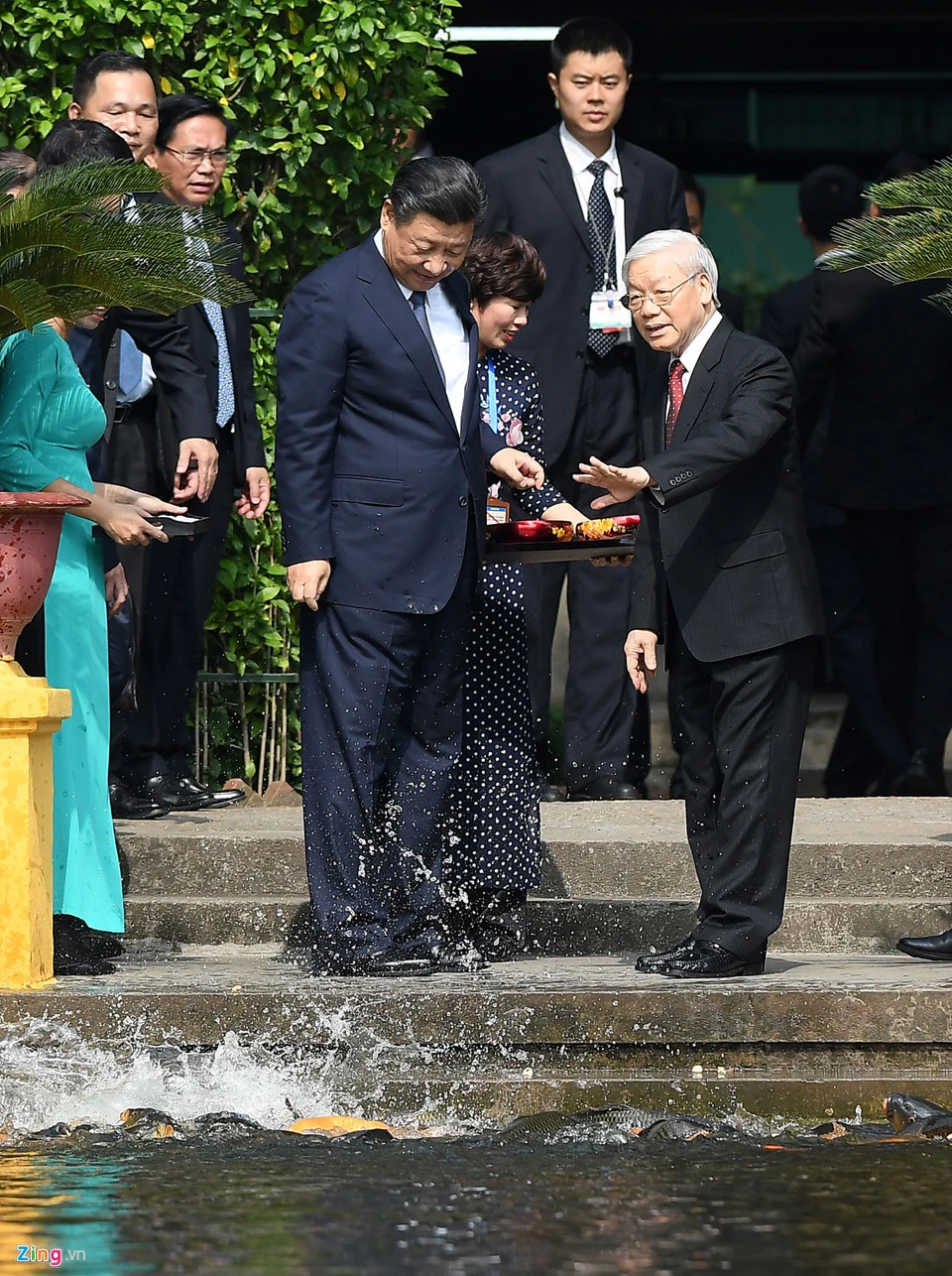 Ao cá Bác Hồ là nơi nhiều lãnh đạo thế giới từng ghé thăm khi đến Hà Nội. Đây là một trong những hoạt động của ông Tập trước khi ông lên đường về nước hôm nay. Ảnh: ZING