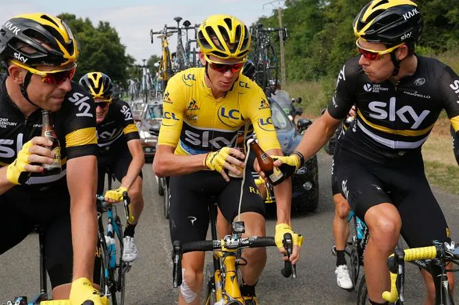 Các tay đua đội Sky cùng ăn mừng thành công tại Tour de France 2016.