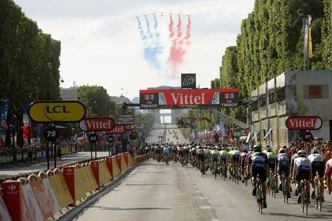"Tê giác" cùng đoàn đua tiến vào Khải Hoàn Môn (Pháp) tại chặng cuối.