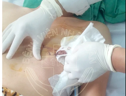 Tại đây, các bác sĩ (BS) nhanh chóng phẫu thuật mở ngực trái, khâu vết thương tâm thất phải 2 cm. Tiếp theo, các BS khâu cầm máu các tổn thương, đặt dẫn lưu màng phổi và đóng ngực.