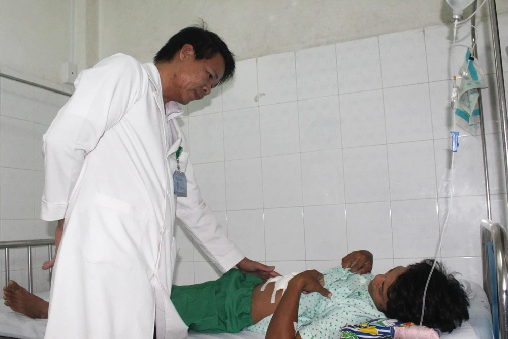 Lúc này anh T. mới cho biết anh làm phụ hồ, hai ngày trước đó khi anh làm công trình ở Nha Trang thì bị té giàn giáo đập vào vùng sườn trái. Lúc đó có hơi ê ẩm nhưng nghĩ là bình thường không nguy hiểm nên anh không chú ý.