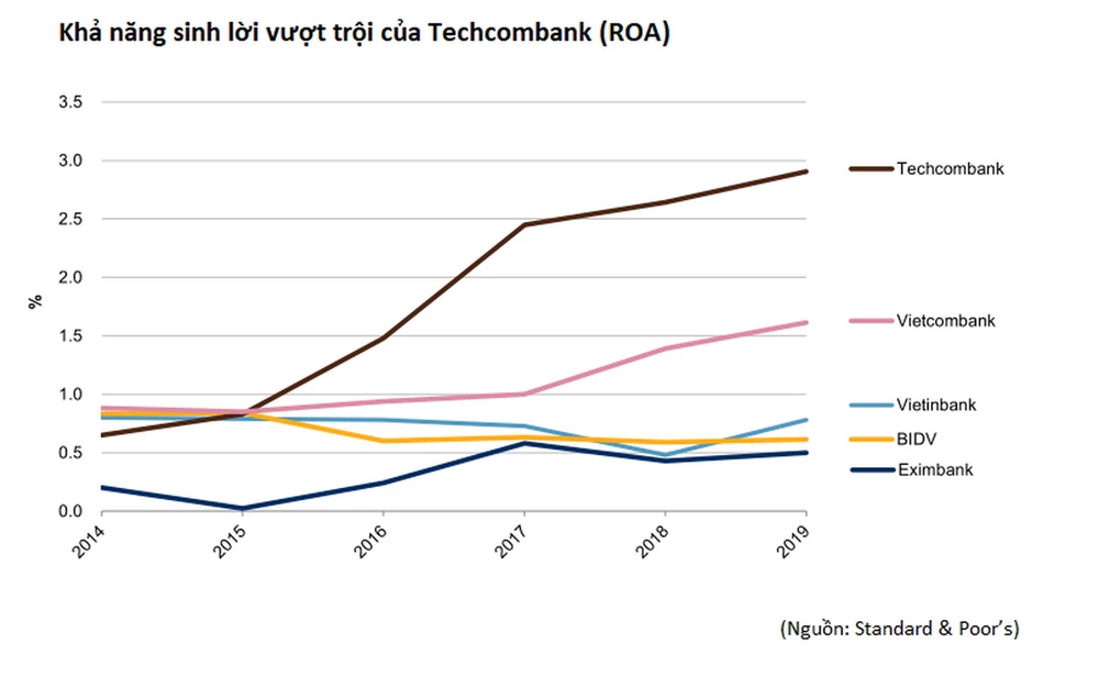 “Ngân hàng có khả năng duy trì lợi nhuận trên mức trung bình ngành nhờ lợi suất cho vay cao, tỉ trọng tiền gửi có chi phí thấp ngày càng tăng, thu nhập ngoài lãi khá lớn và tỉ lệ chi phí trên thu nhập nằm trong khoảng 35%”, báo cáo của S&P cho biết.