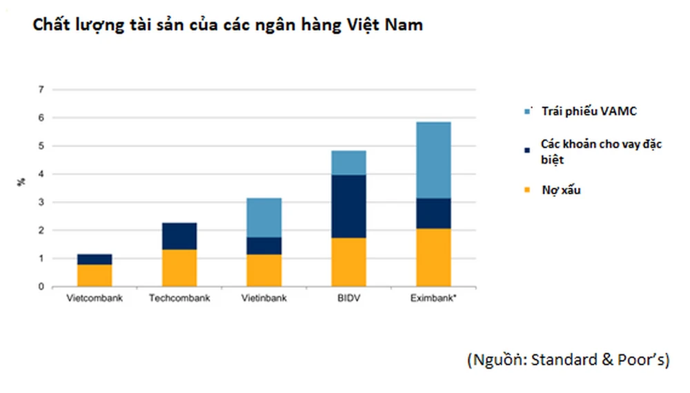 S&P đánh giá, Techcombank là một trong những ngân hàng đầu tiên tại Việt Nam tất toán toàn bộ trái phiếu đặc biệt với VAMC, đồng thời sở hữu tỉ lệ nợ xấu thấp hơn nhiều so với các nhà băng khác. Ngoài ra, ngân hàng cũng thu được khoản lợi nhuận đáng kể từ việc thu hồi khoản nợ đã xử lý, giữ chi phí tín dụng ở mức thấp trong những năm gần đây.